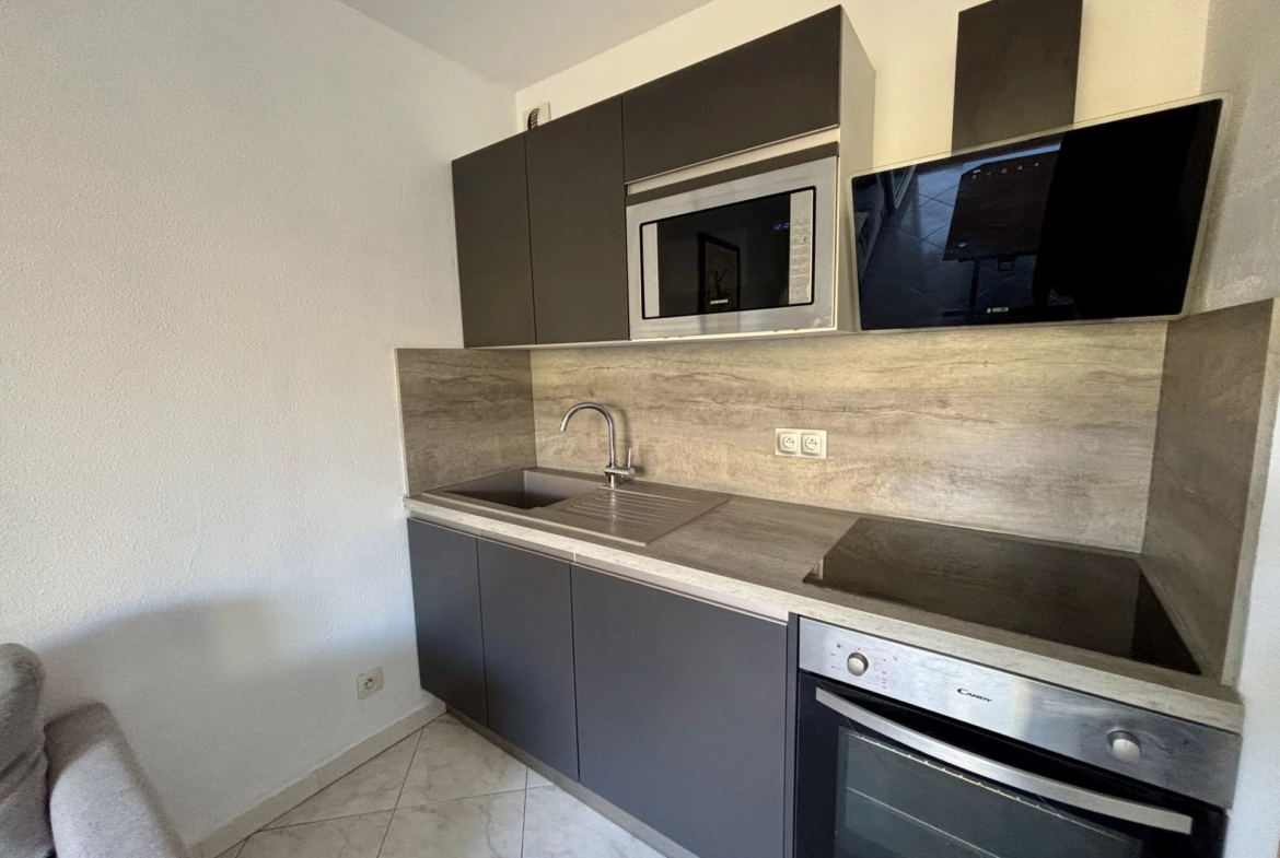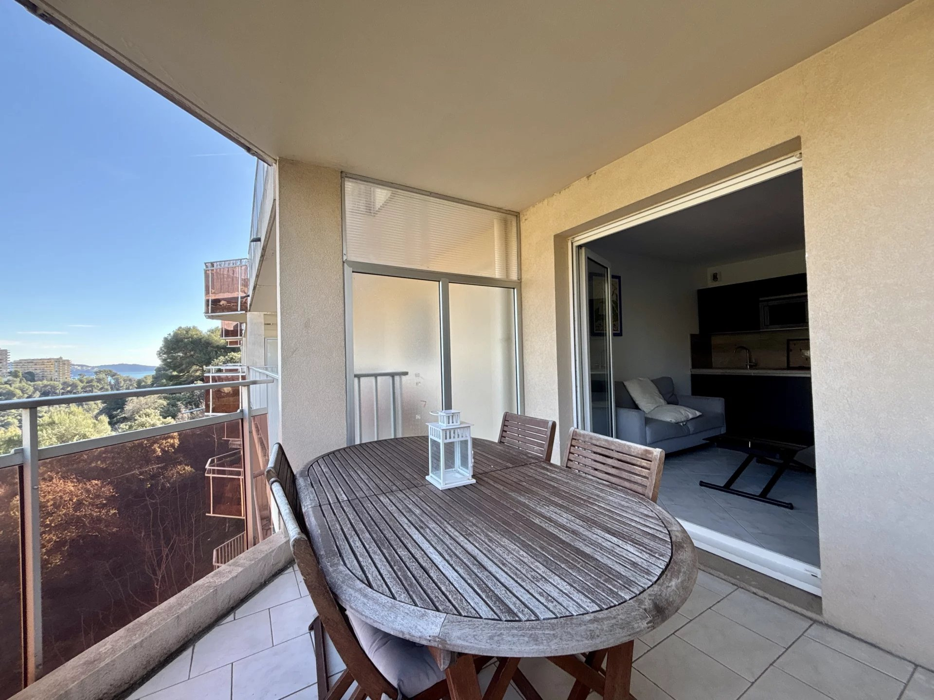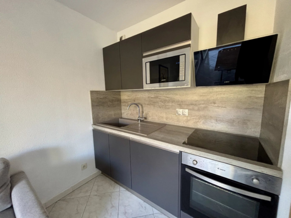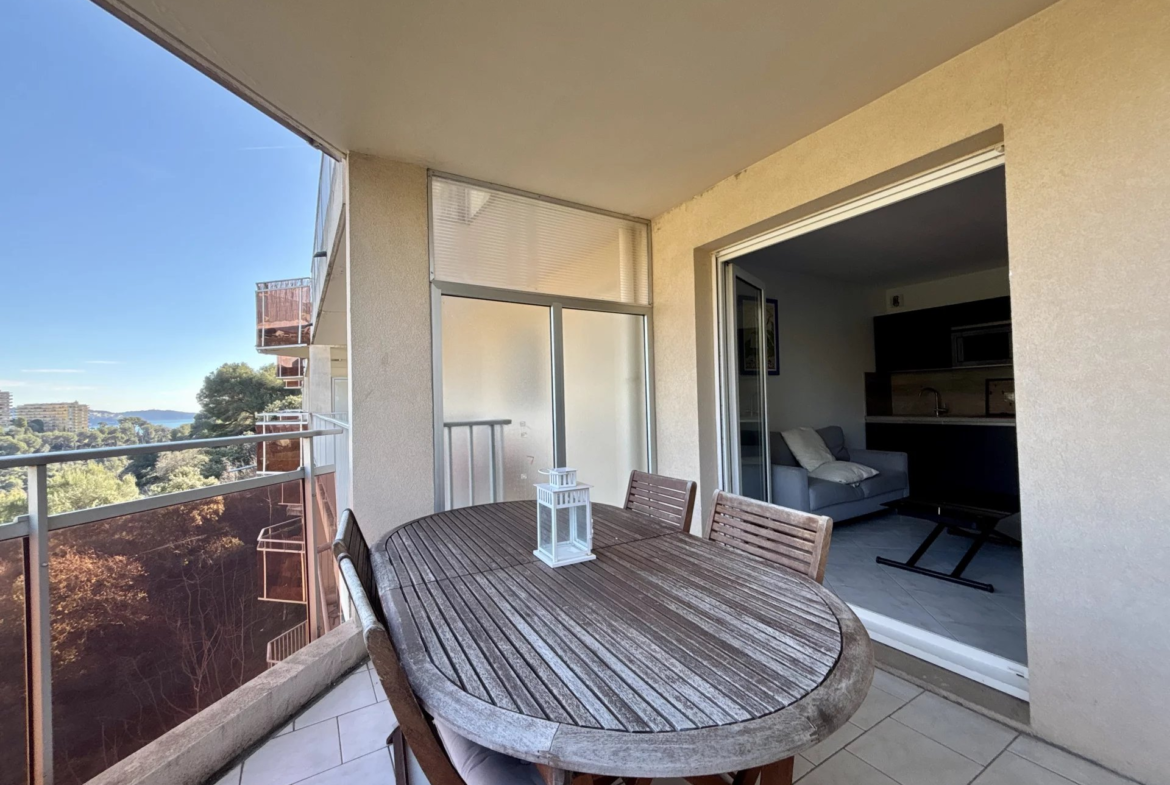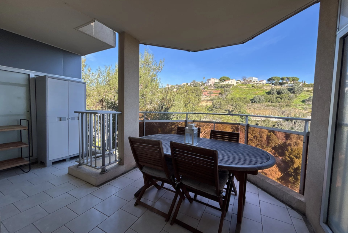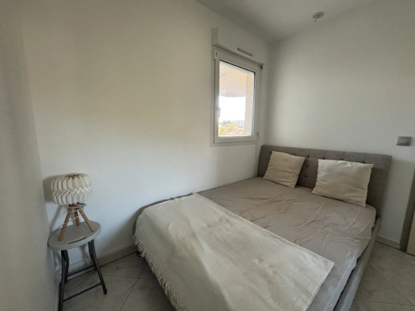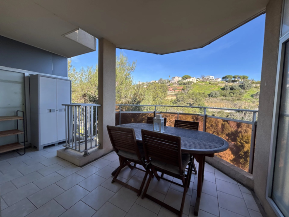 Il est composé d’une entrée avec placards, d’un séjour lumineux avec cuisine aménagée et équipée, ouvert sur une belle terrasse offrant une vue dégagée sur les collines et un aperçu mer, une chambre avec dressing et une salle de bains avec wc.