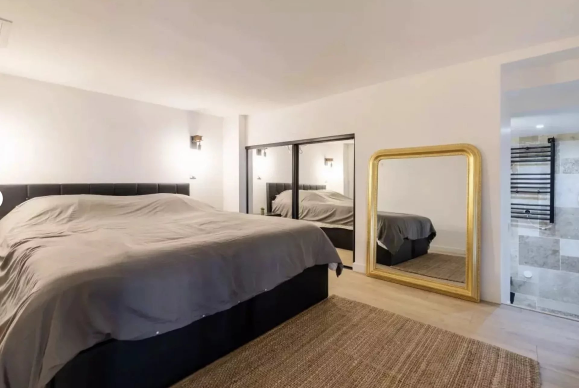 À l’étage, une chambre, une salle d’eau contemporaine ainsi qu’une seconde pièce pouvant faire office de dressing ou bureau.