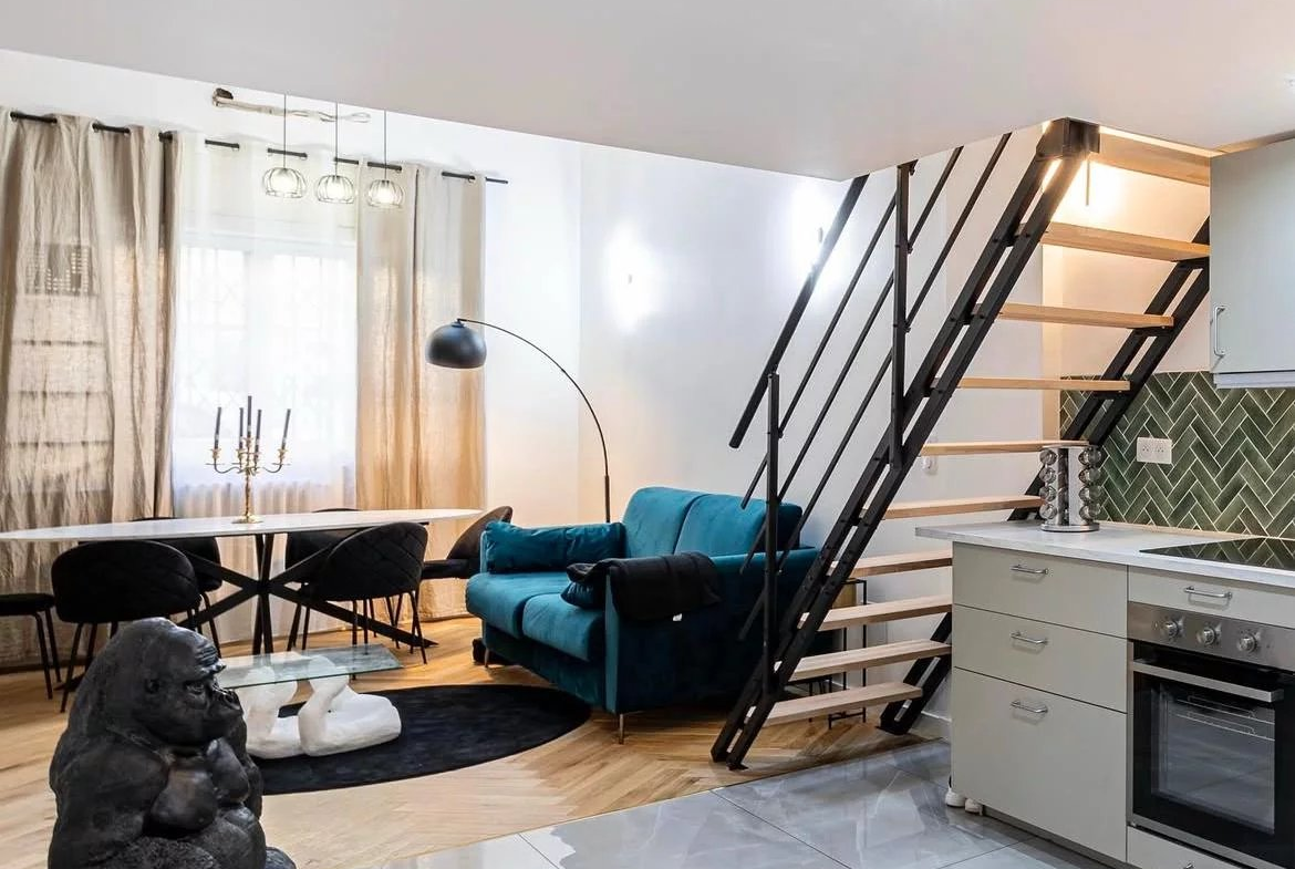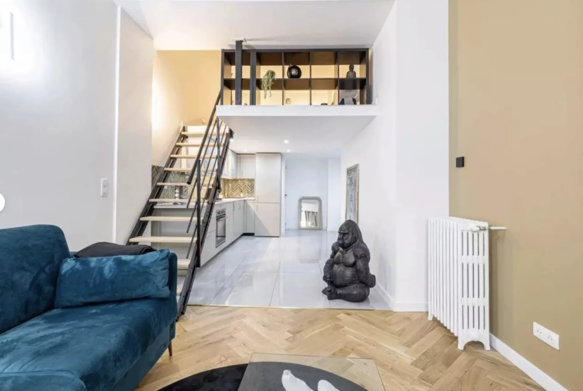 Appartement de type loft situé en rez-de-chaussée d’un ancien hôtel bourgeois bien entretenu, offrant 62,7 m² au sol (56 m² loi Carrez), entièrement rénové, clé en main, avec possibilité d’être vendu meublé.