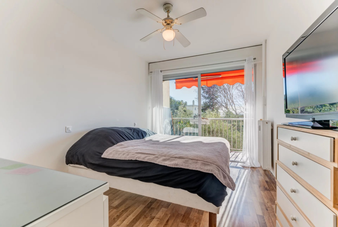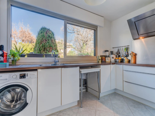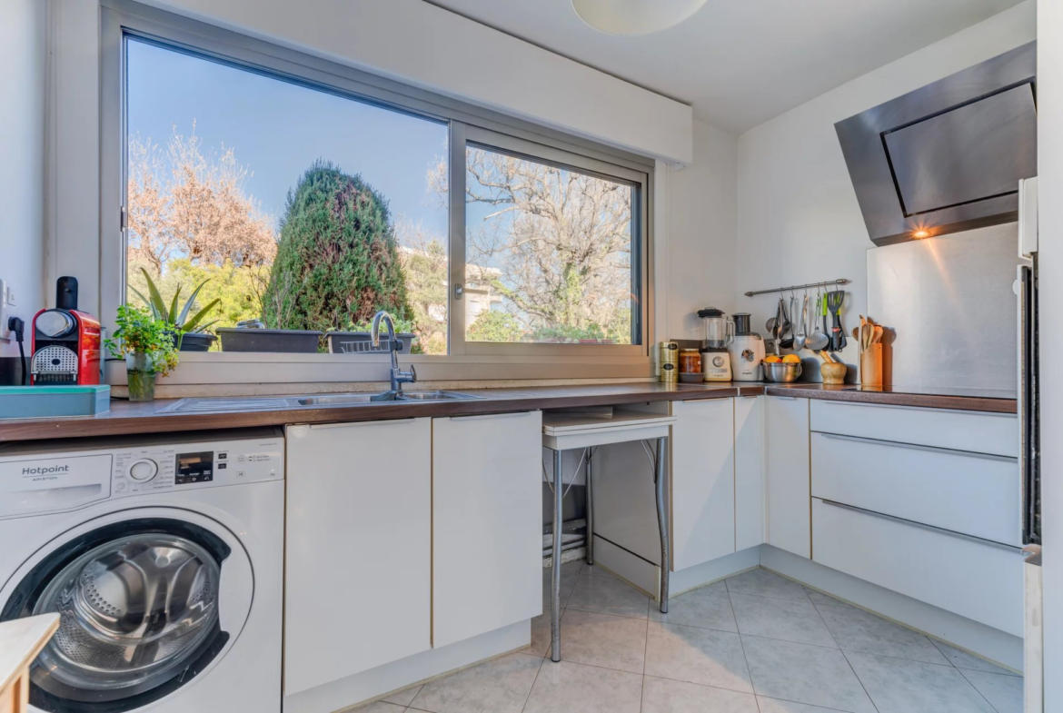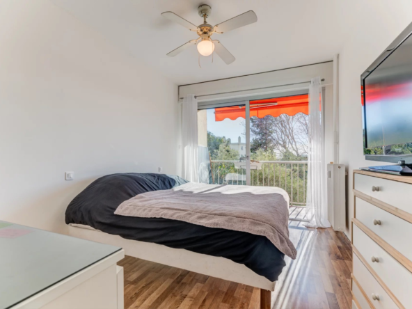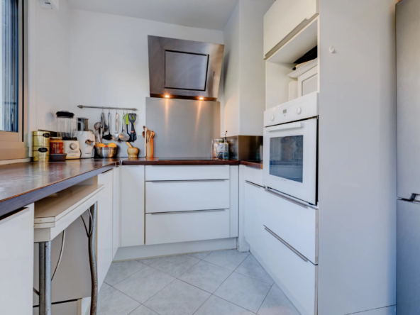 Cet appartement se compose d’un séjour lumineux exposé plein Sud ouvrant sur un balcon,