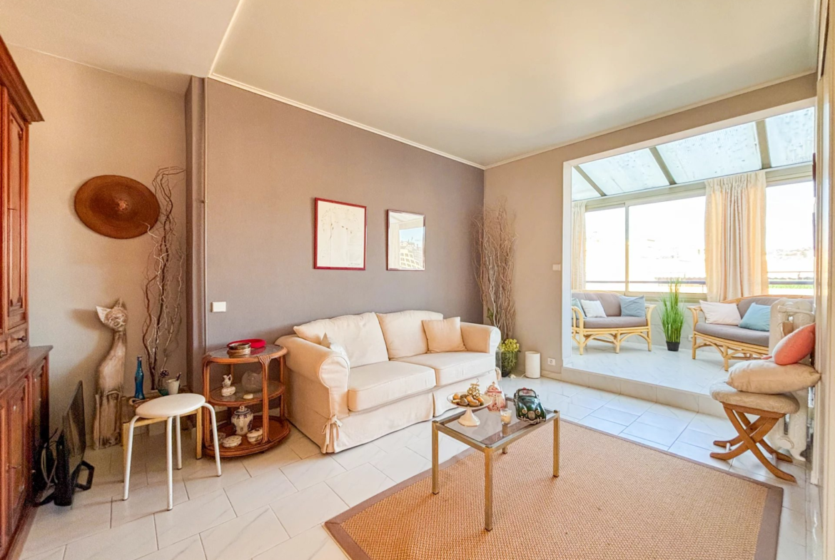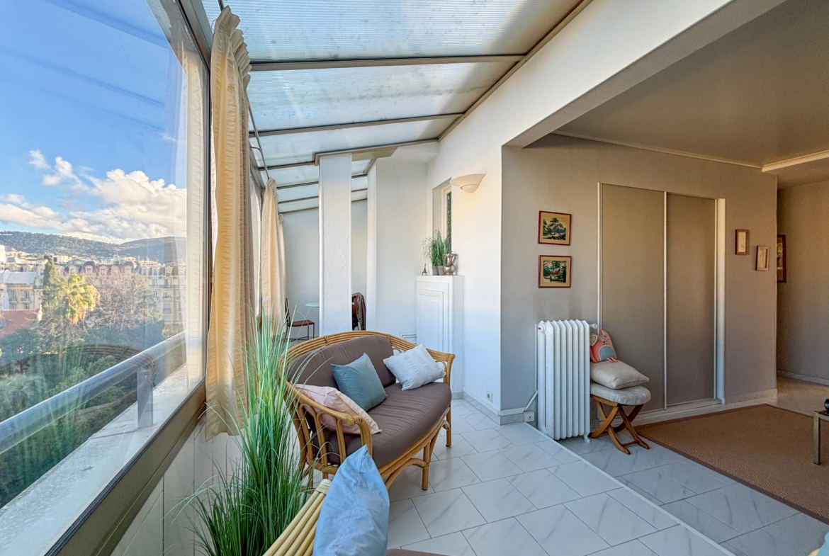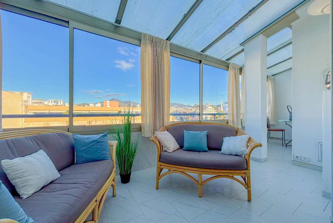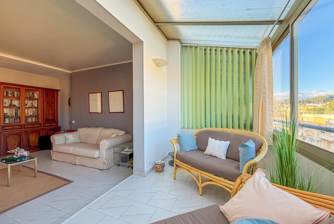 CARRE D’OR: Dans une très belle résidence de standing fermée et sécurisée, superbe appartement 2 pièces d’environ 60m2 en dernier étage avec ascenseur composé d’une entrée avec dressing, grand double séjour avec terrasse fermée en loggia, cuisine aménagée, grande chambre avec rangements et balcon ensoleillé. Vue dégagée, situation et adresse de tout premier ordre.