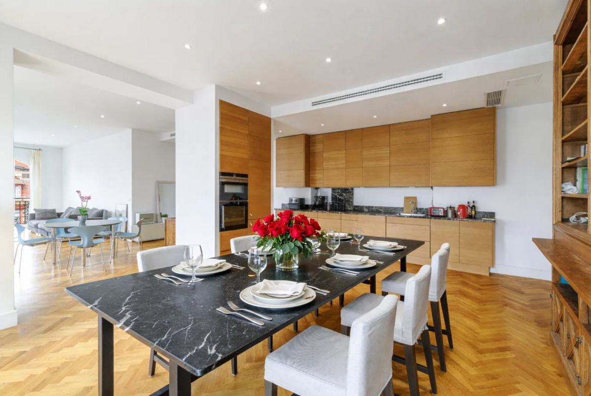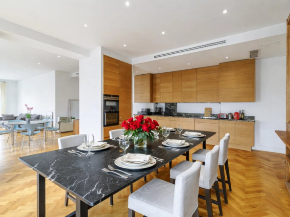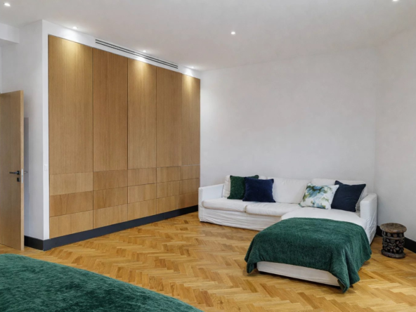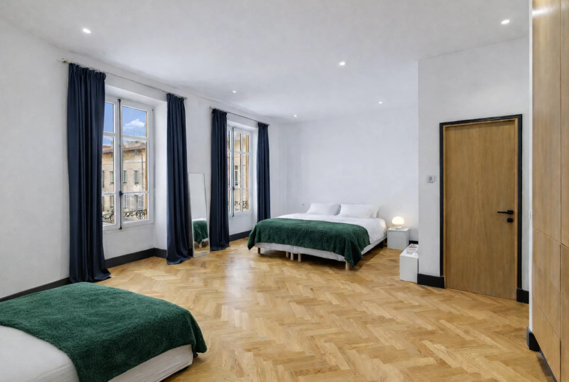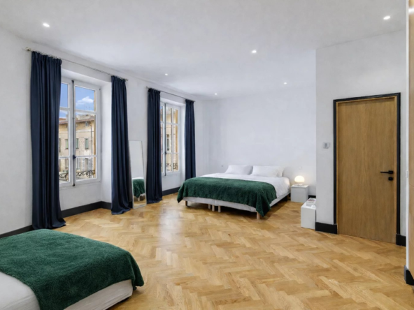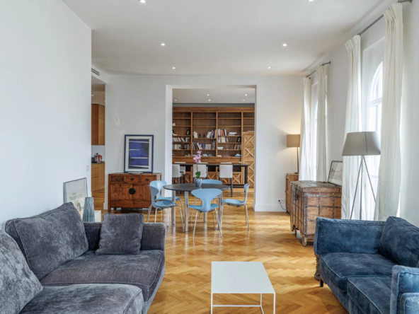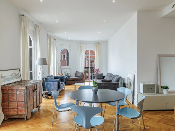 Nice Carré d’or, au dernier étage d’un bel immeuble bourgeois, sublime appartement triple exposition de 170,23m2 composé d’nu très grand salon/salle à manger lumineux, avec balcons, cuisine ouverte entièrement équipée, 3 beaux espaces de nuits dont une suite parentale avec salle de bains (douche et bains) et dressing, 2 belles chambres et une salle de bains indépendante. Buanderie dans l’appartement. Cave au sous-sol.