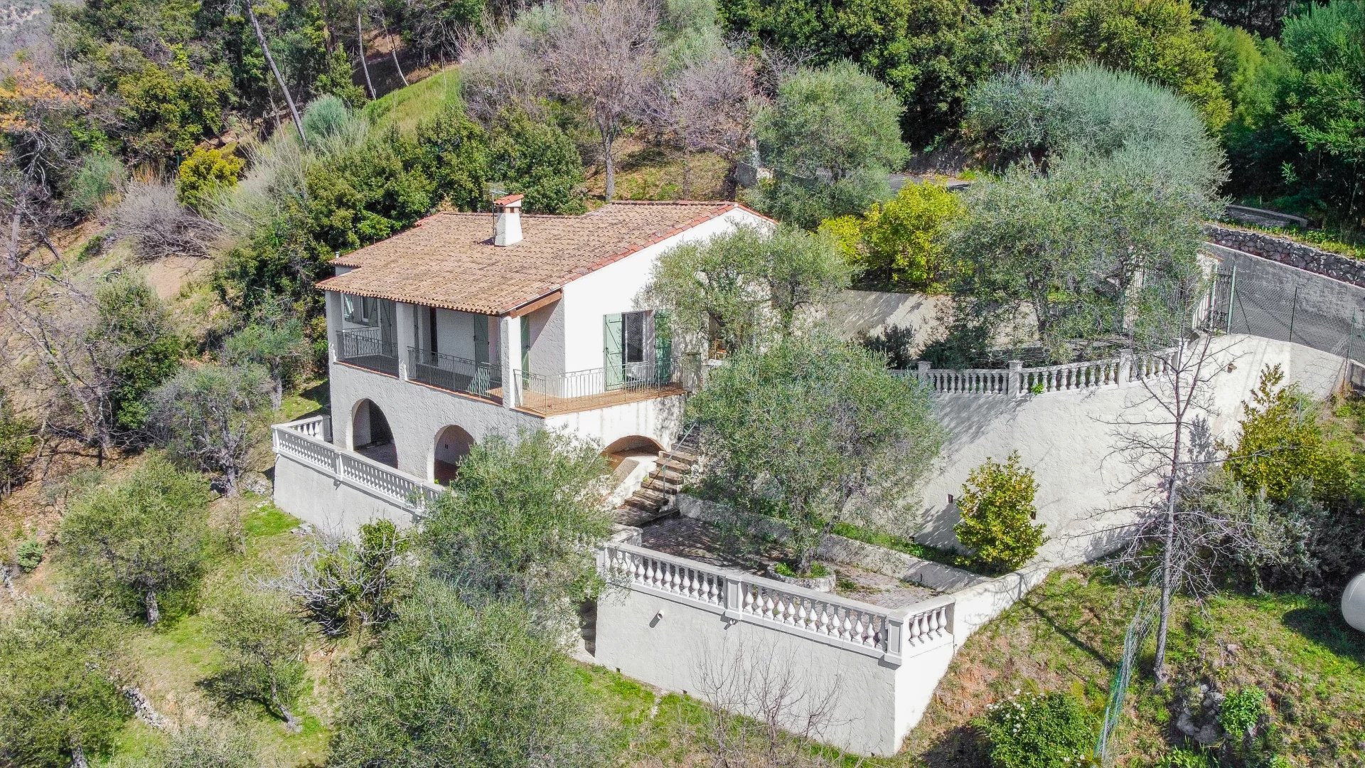 CASTAGNIERS: A quelques centaines de mètres du centre du village, en retrait de toutes les nuisances, superbe maison individuelle d’environ 96m2 sur un terrain paysager d’environ 2665m2 exposé Sud Ouest.