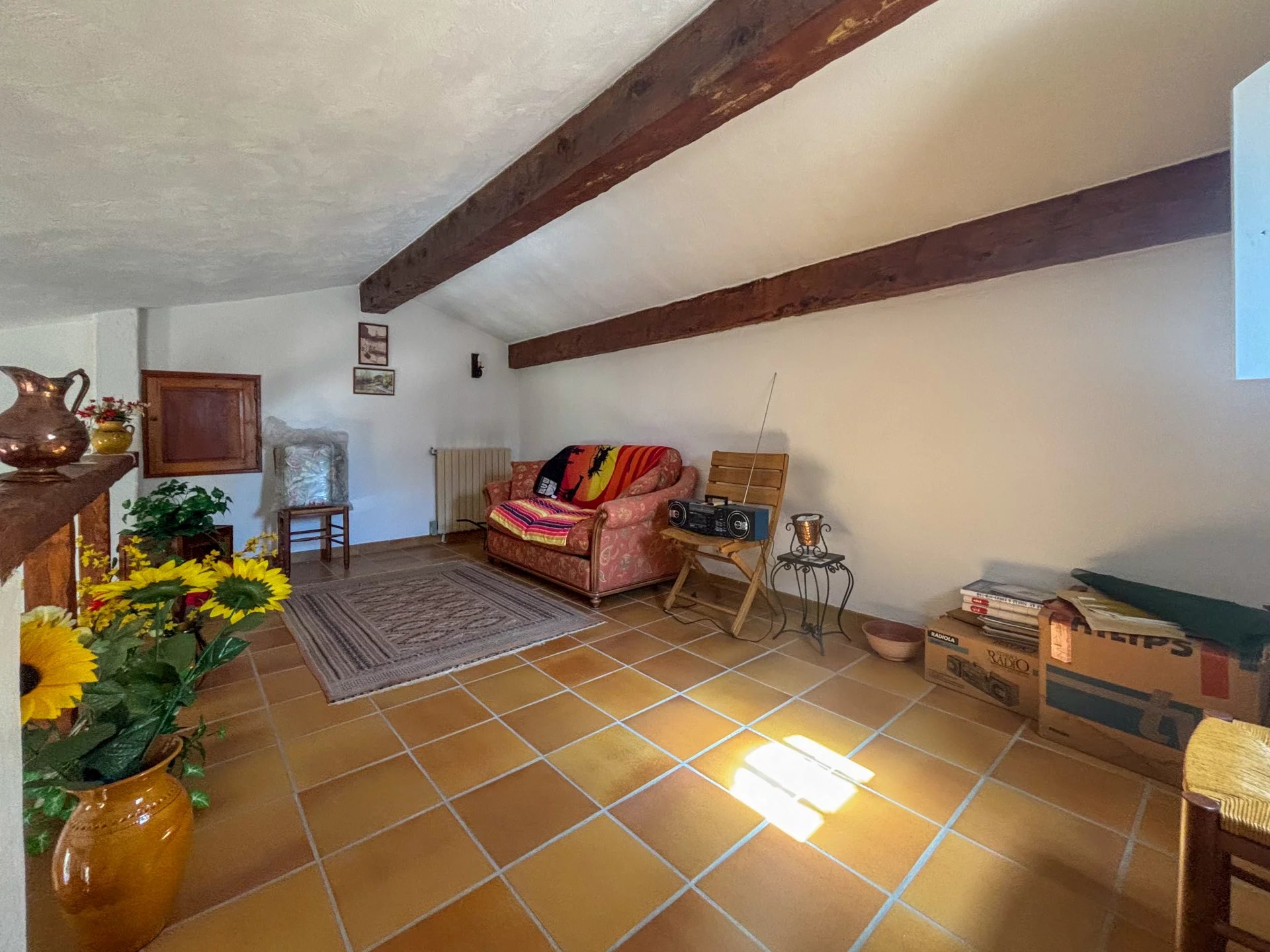 La maison est aujourd’hui composé d’une entrée avec rangements, 2 chambres dont une suite parentale avec salle d’eau, grande salle de bains avec baignoire, cuisine séparée, grand séjour avec mezzanine, garage.