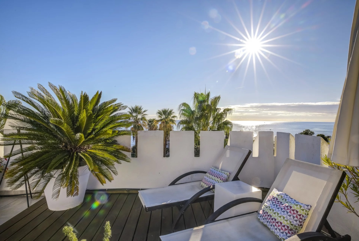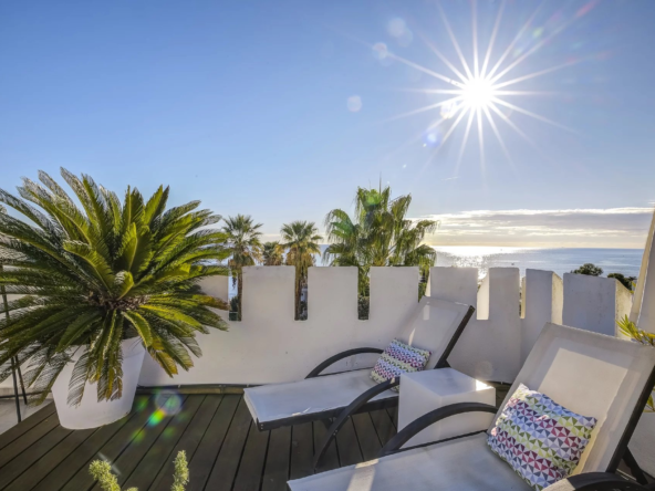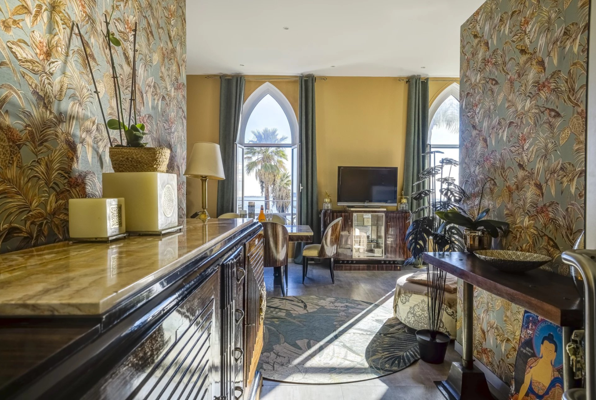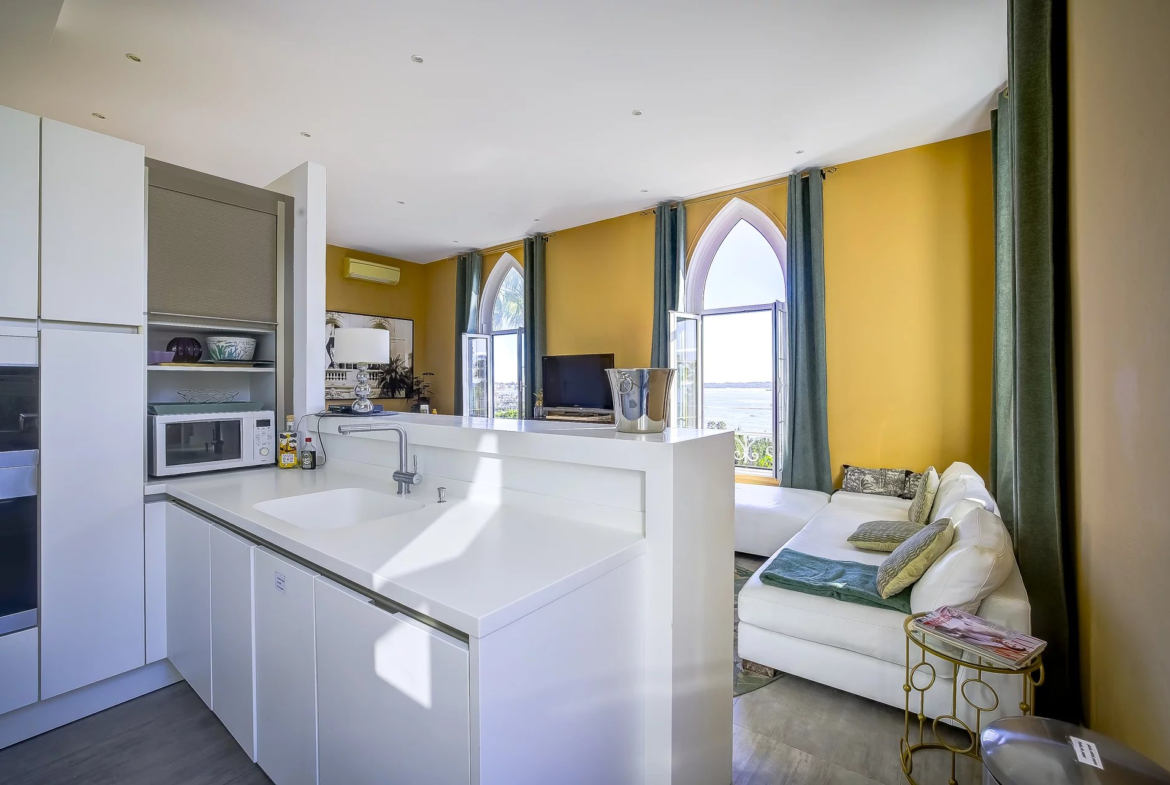 Penthouse dans La Villa Mauresque de 1885 à Golfe-Juan près de Cannes (6 min) et rénovée en 2022. Nous y proposons aujourd’hui tout le dernier étage composé d’un 3 pièces et d’un studio indépendant.