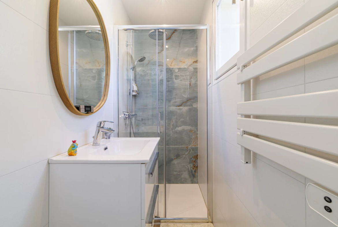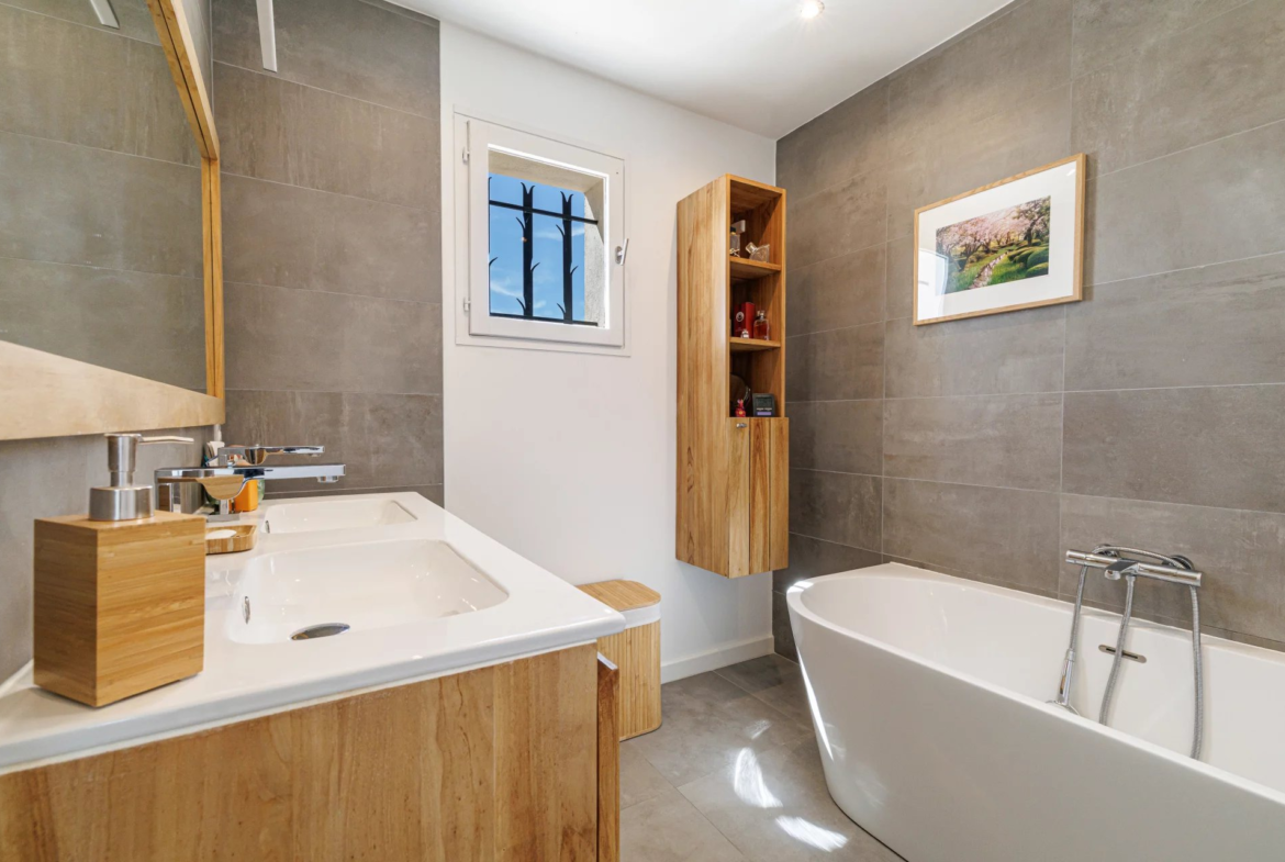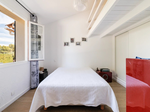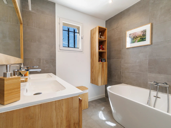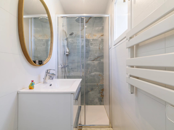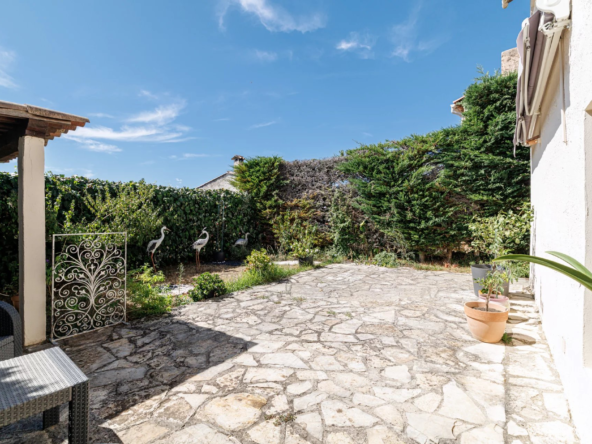 La maison fait partie d’un petit lotissement dont les maisons sont jumelées, véritable havre de paix.