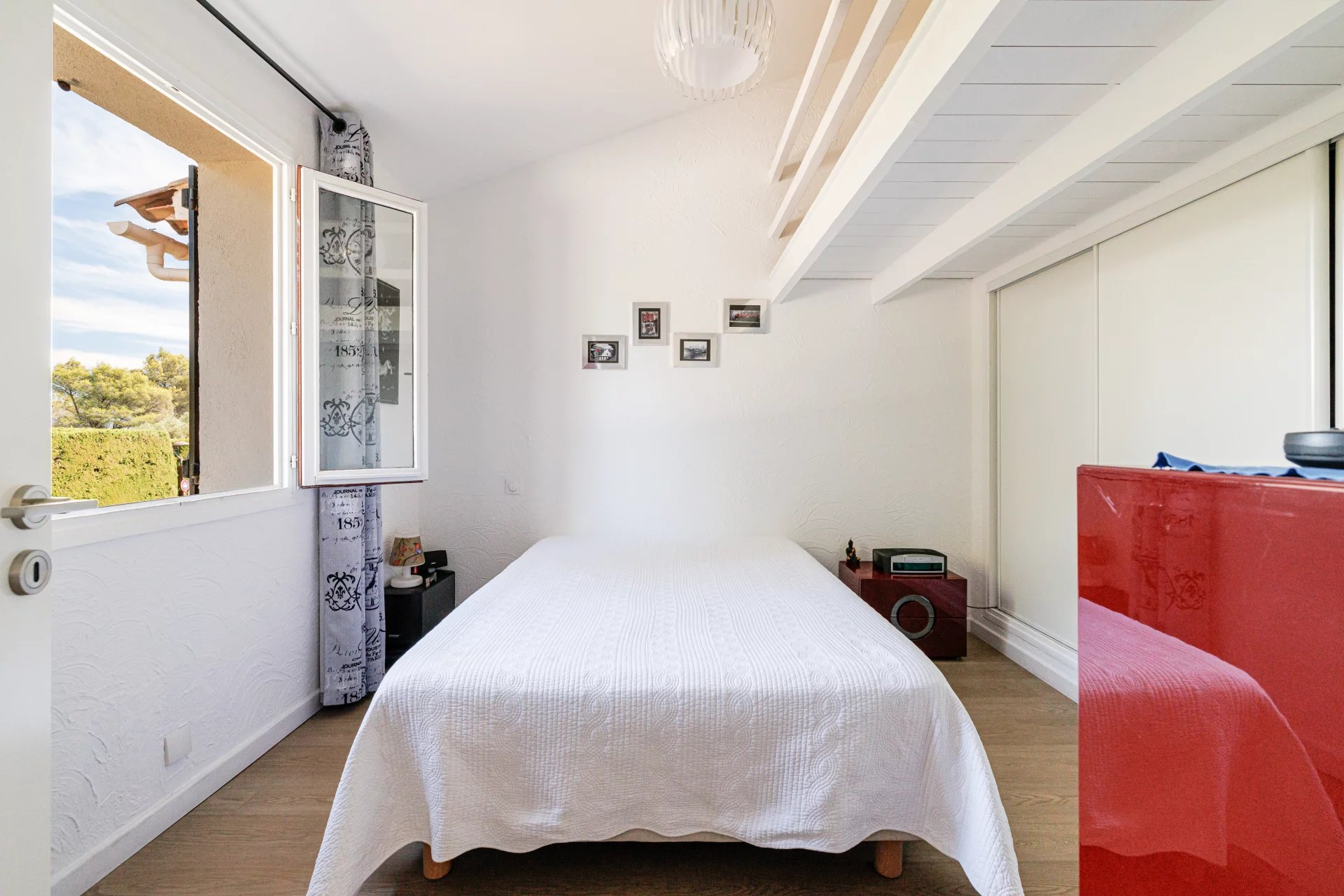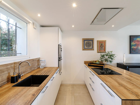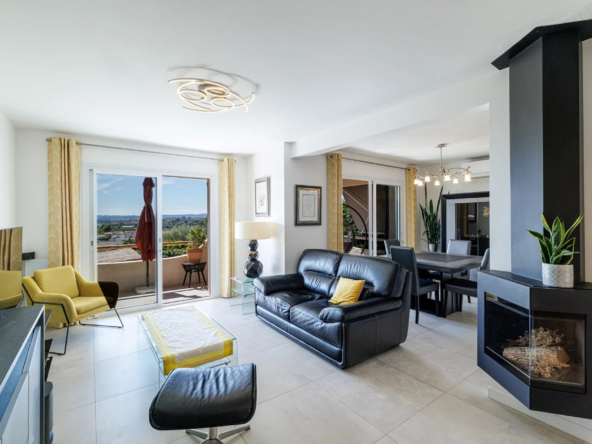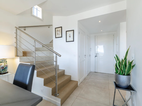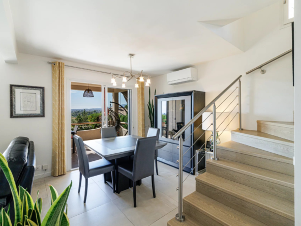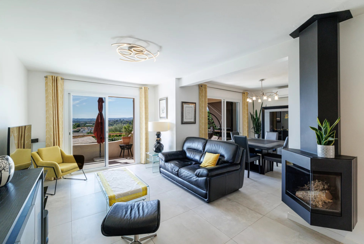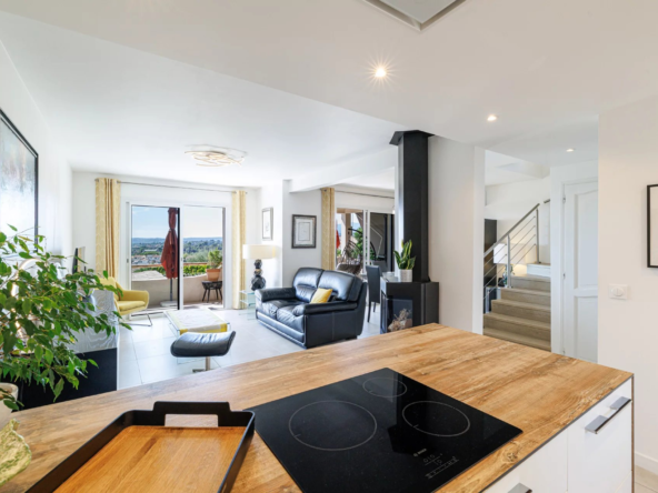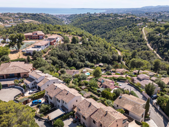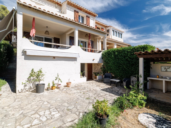 LE GAUDE: Dans la résidence LE DOMAINE DE L’ETOILE, magnifique maison d’environ 110m2 sur 3 niveaux, composé d’une entrée, très grand double séjour avec cuisine ouverte et accès à la terrasse à la vue dégagée et aperçu mer, 3 chambres à l’étage, salle de bains, salle d’eau, 2 WC, sous-sol total entièrement aménagé en chambre supplémentaire (ou salle de sport ou grand bureau), belle cave saine, espace buanderie.