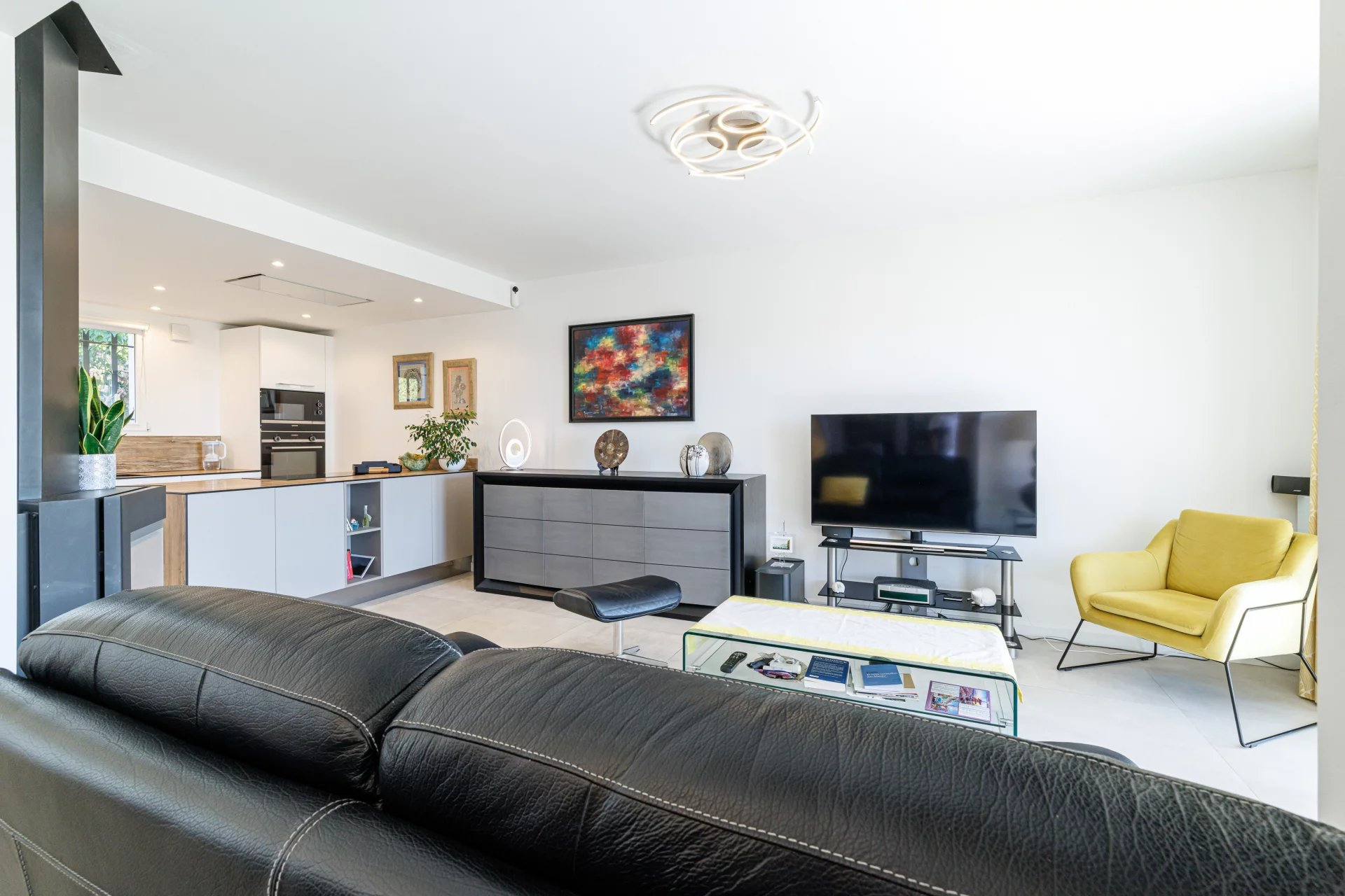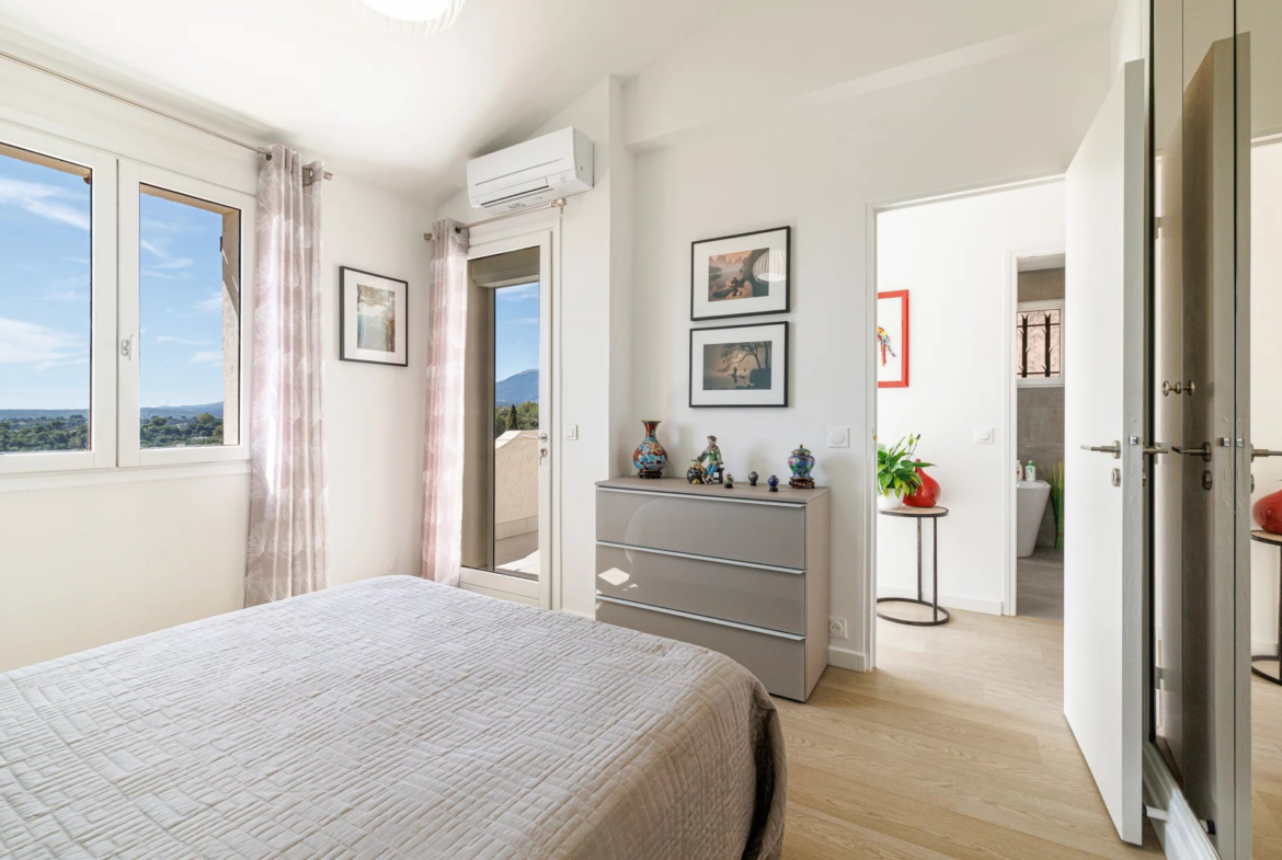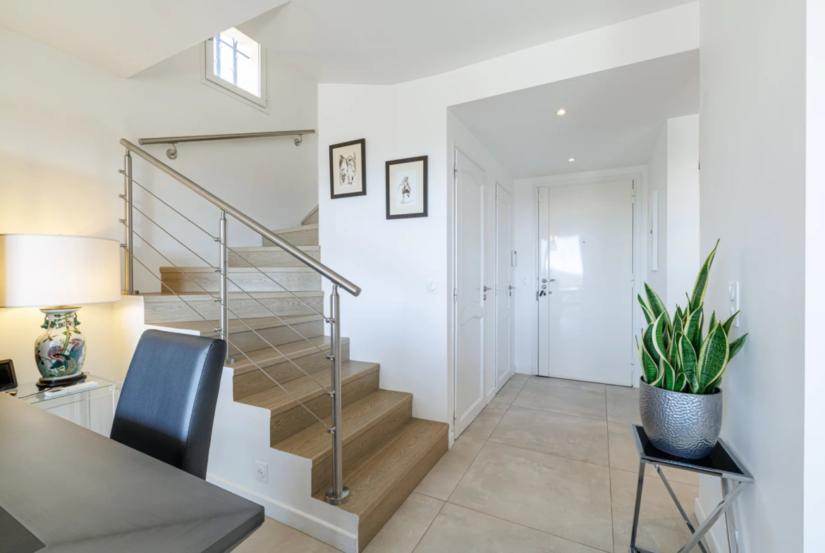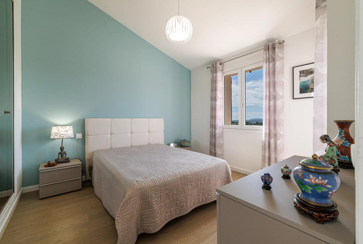 LE GAUDE: Dans la résidence LE DOMAINE DE L’ETOILE, magnifique maison d’environ 110m2 sur 3 niveaux, composé d’une entrée, très grand double séjour avec cuisine ouverte et accès à la terrasse à la vue dégagée et aperçu mer, 3 chambres à l’étage, salle de bains, salle d’eau, 2 WC, sous-sol total entièrement aménagé en chambre supplémentaire (ou salle de sport ou grand bureau), belle cave saine, espace buanderie.