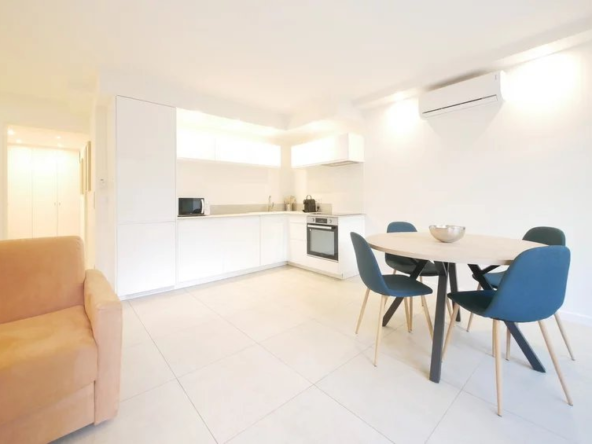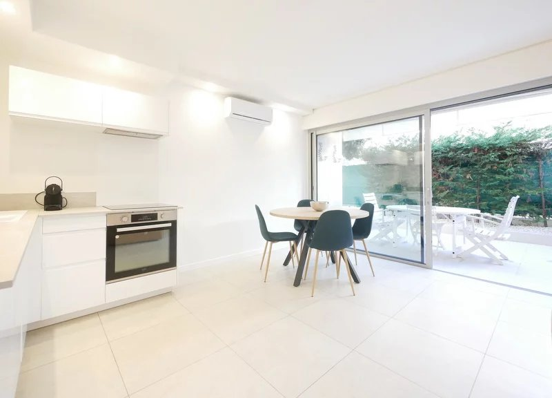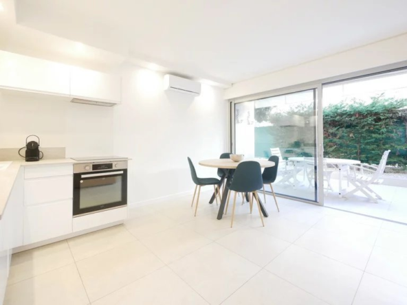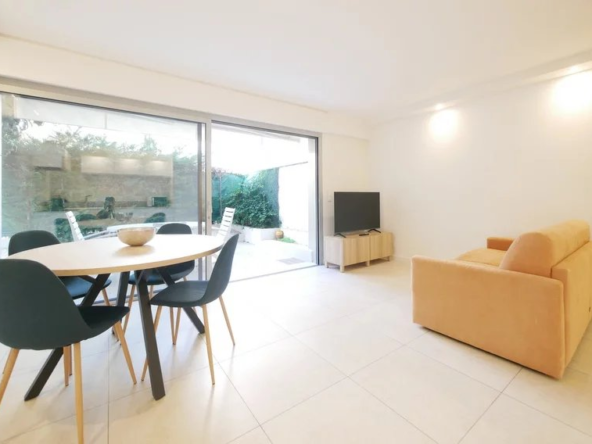 Dans le secteur très prisé de Palm Beach, magnifique appartement 2 pièces de 46,55m² entièrement refait avec terrasse et jardin de 75m² exposés sud et ouest au sein d’une petite résidence de standing, à proximité de la mer, des commerces et de la Croisette.