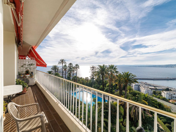 MONT BORON: Dans une des plus prestigieuses résidence du Mont Boron offrant un parc, piscine et gardien, nous proposons ce magnifique appartement 2 pièces composé d’un très grand séjour de presque 30m2 à la cuisine semi-ouverte, chambre avec rangements, terrasse de 16m2 à la vue panoramique sur la ville, le Port de Nice et la mer.