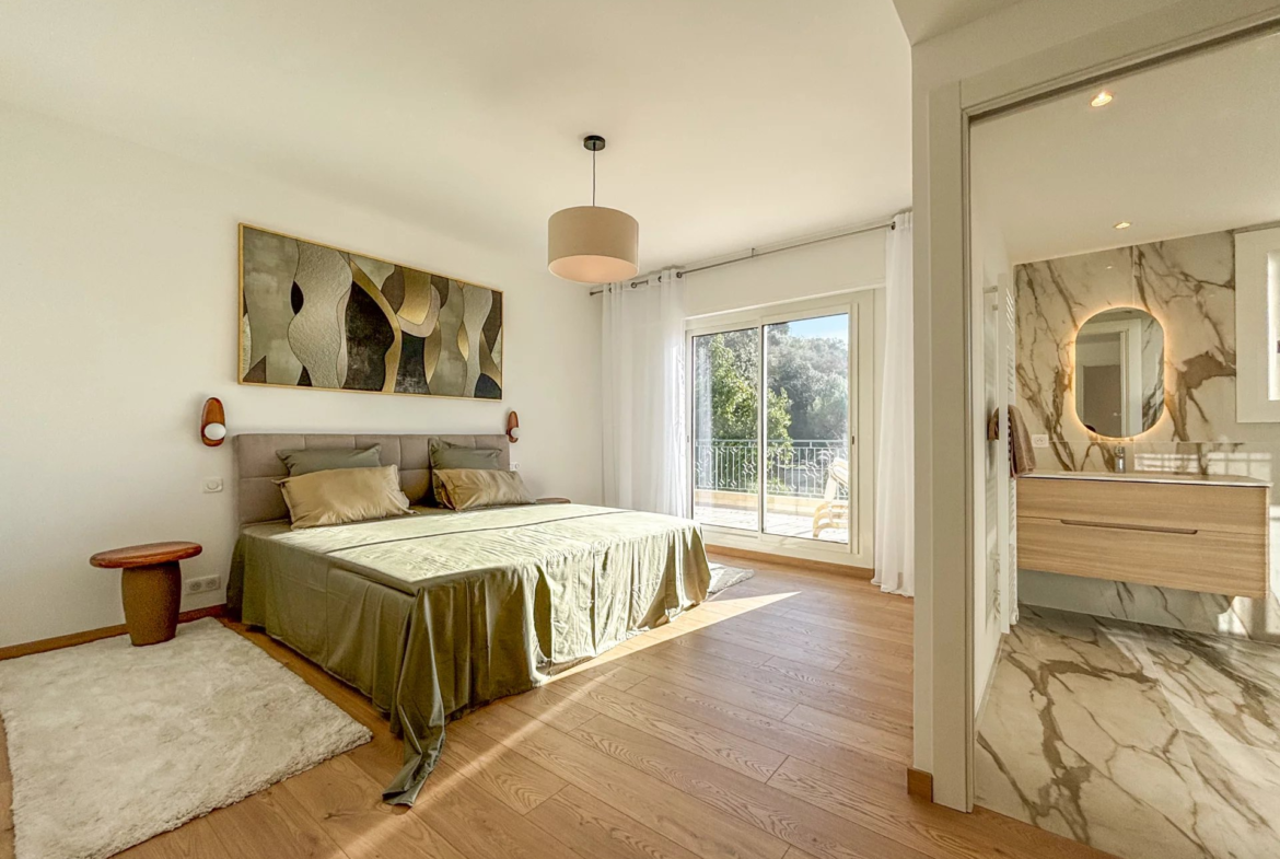 L’espace nuit se compose de quatre chambres, dont deux suites, ainsi que d’une élégante salle de bains et de toilettes invités.