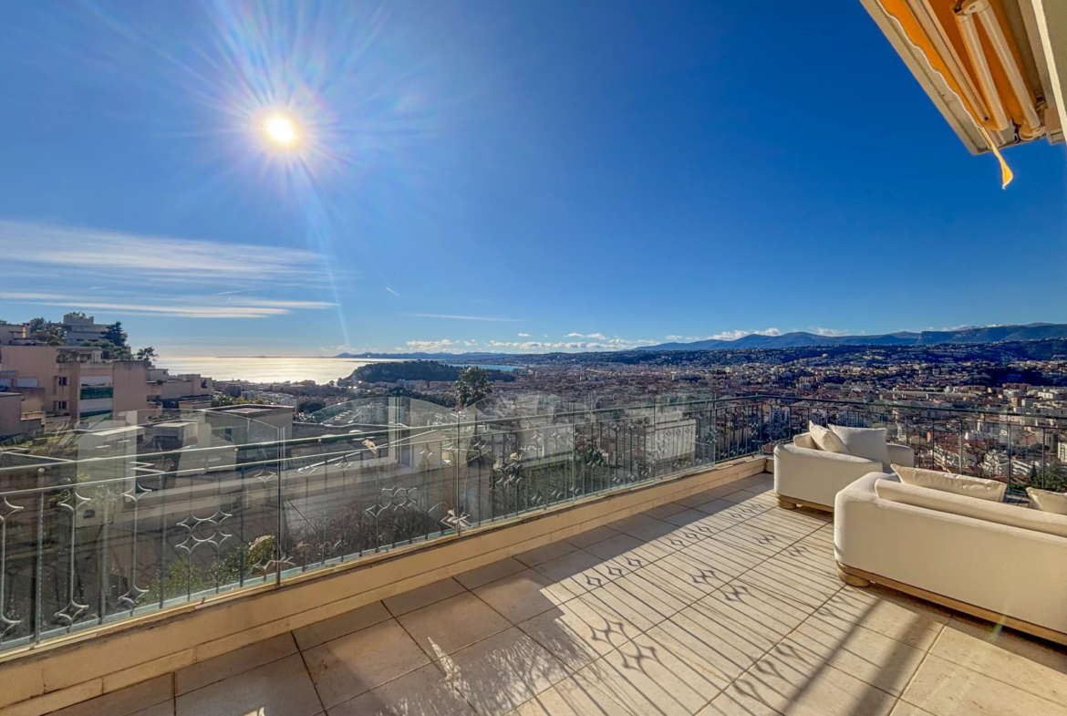 NICE MONT BORON: Situé au dernier étage d’une résidence de standing, ce magnifique appartement 5 pièces “villa sur le toit” en triple exposition de 167 m² offre un cadre de vie exceptionnel.