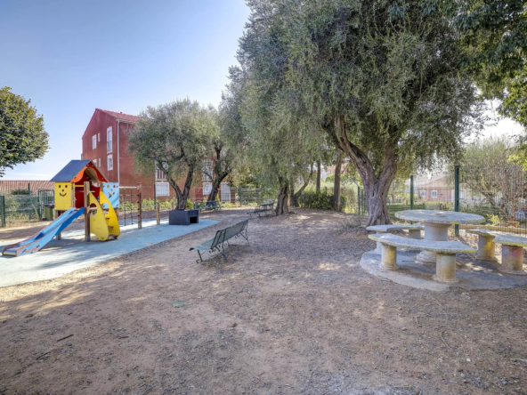 Au sein d’une résidence bien entretenue, avec parc pour enfants, terrain de pétanques et espace pique-nique, au calme absolu,