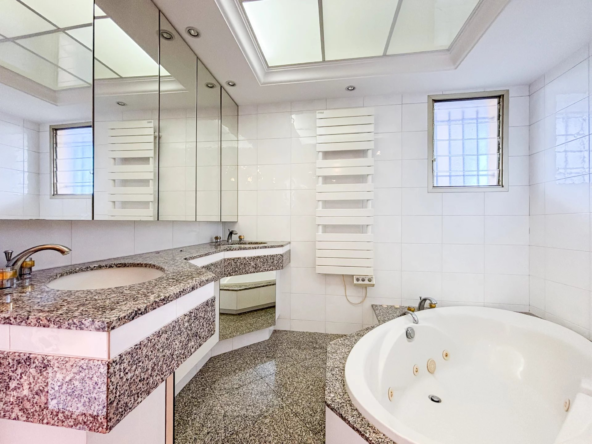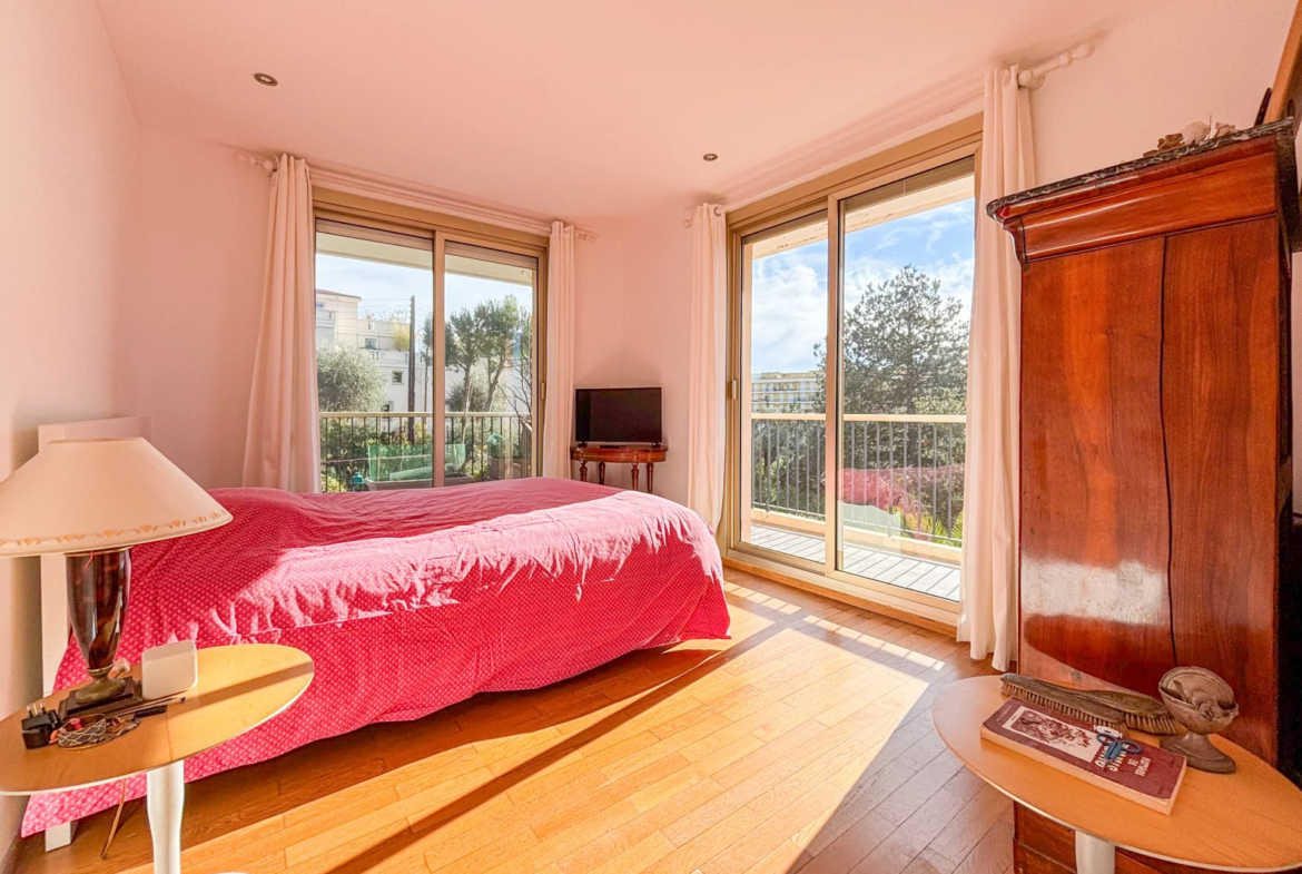 NICE-FABRON: Au coeur de la très prisée résidence de l’Abbaye de Roseland, magnifique appartement 5 pièces en triple exposition d’environ 120M2 composé d’une entrée avec rangements, un spacieux séjour-salle à manger donnant sur une profonde terrasse, une cuisine aménagée équipée, un dressing, 3 grandes chambres dont une chambre de maître avec dressing, salle de bains avec douche et baignoire, une salle de douche avec WC, un WC indépendant. Une grande terrasse d’environ 55m2 avec cellier fait le tour de l’appartement.