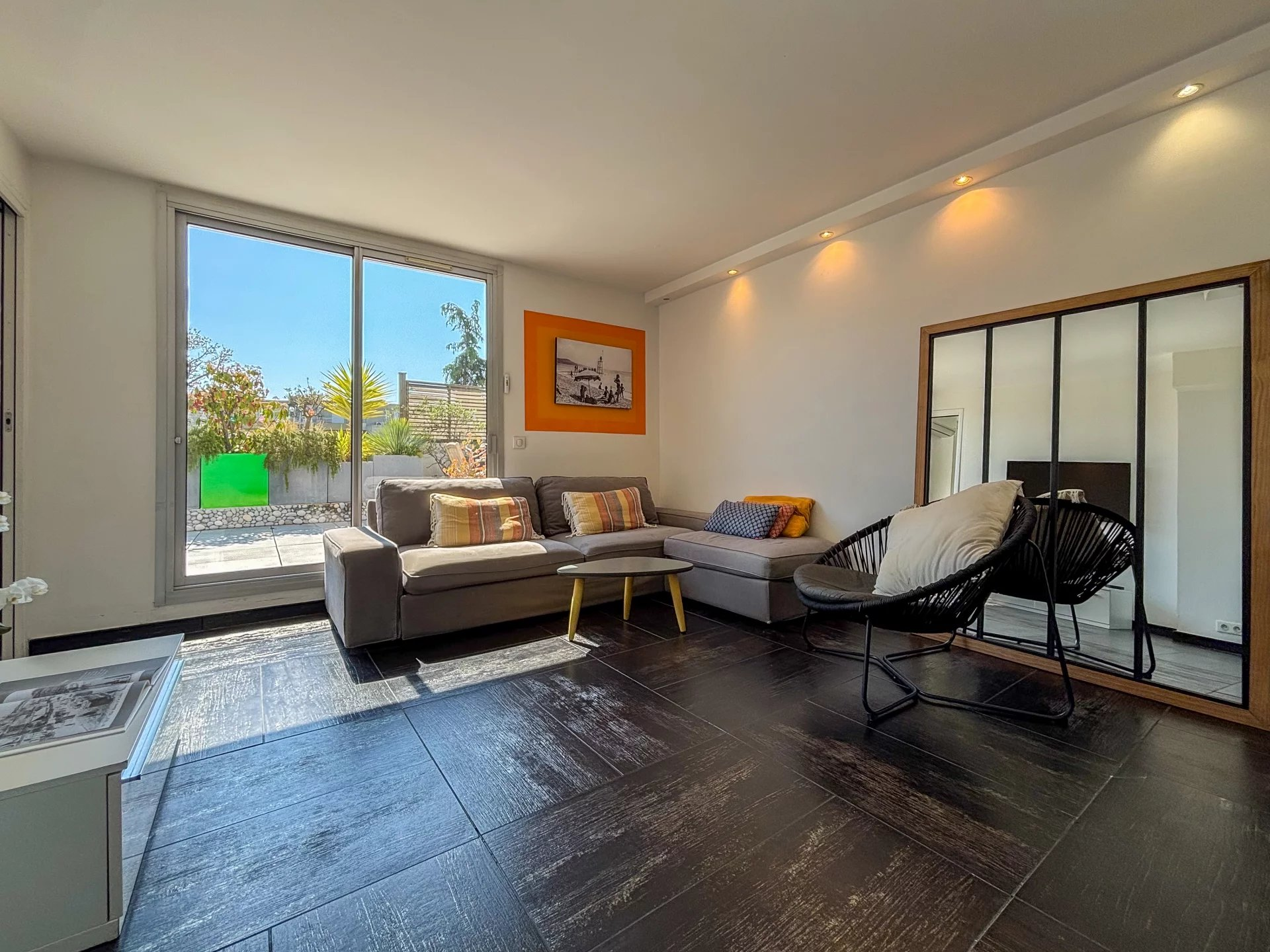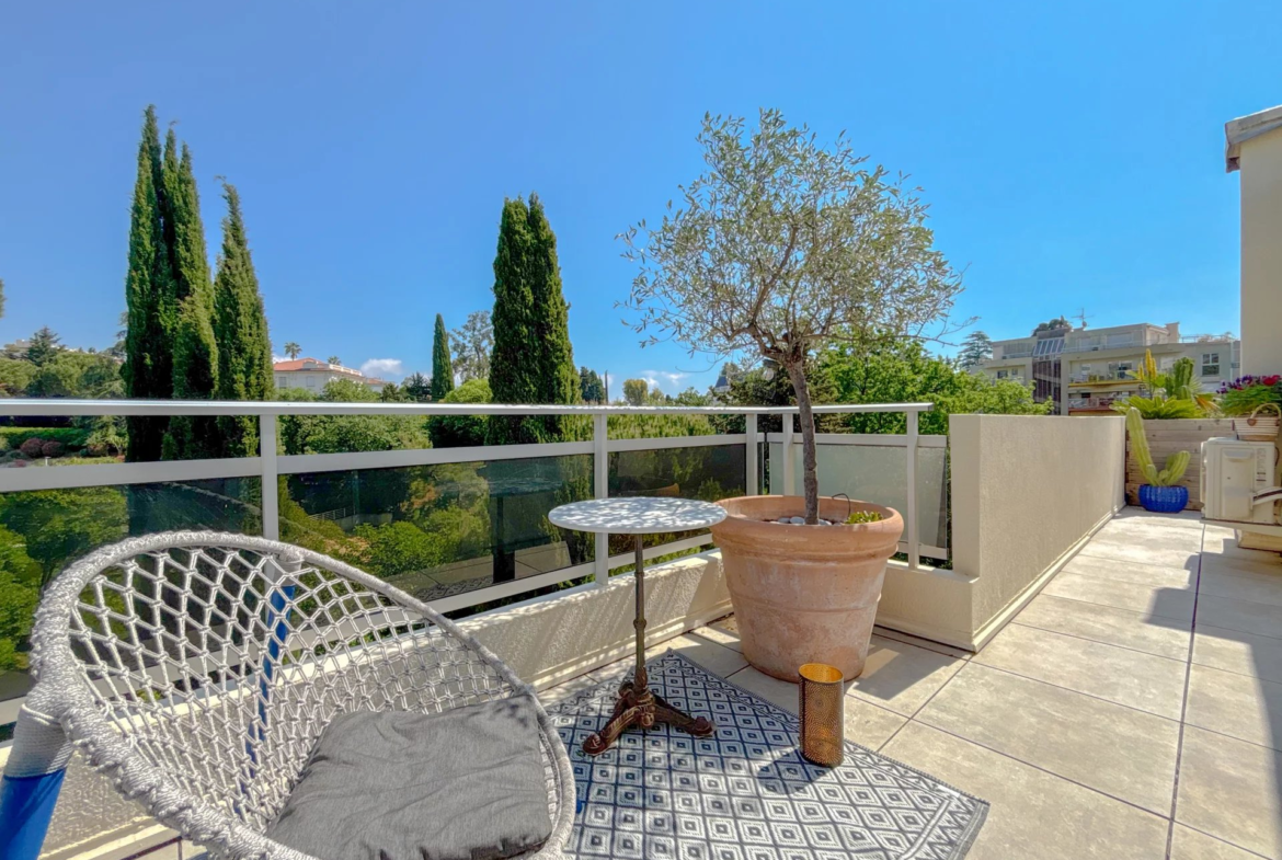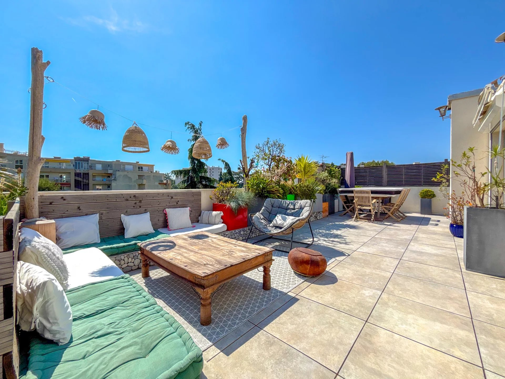 NICE NAPOLEON III: En retrait du boulevard Napoléon III, au calme absolu, en dernier étage d’un petit immeuble, magnifique appartement-villa d’environ 100m2, composé d’une entrée, grand séjour avec cuisine semi-ouverte, 3 chambres, une salle de bains avec douche, baignoire et WC, WC indépendant, ainsi qu’une magnifique terrasse de 100m2 à ciel ouvert aux 3 expositions (Est, Sud, Ouest).