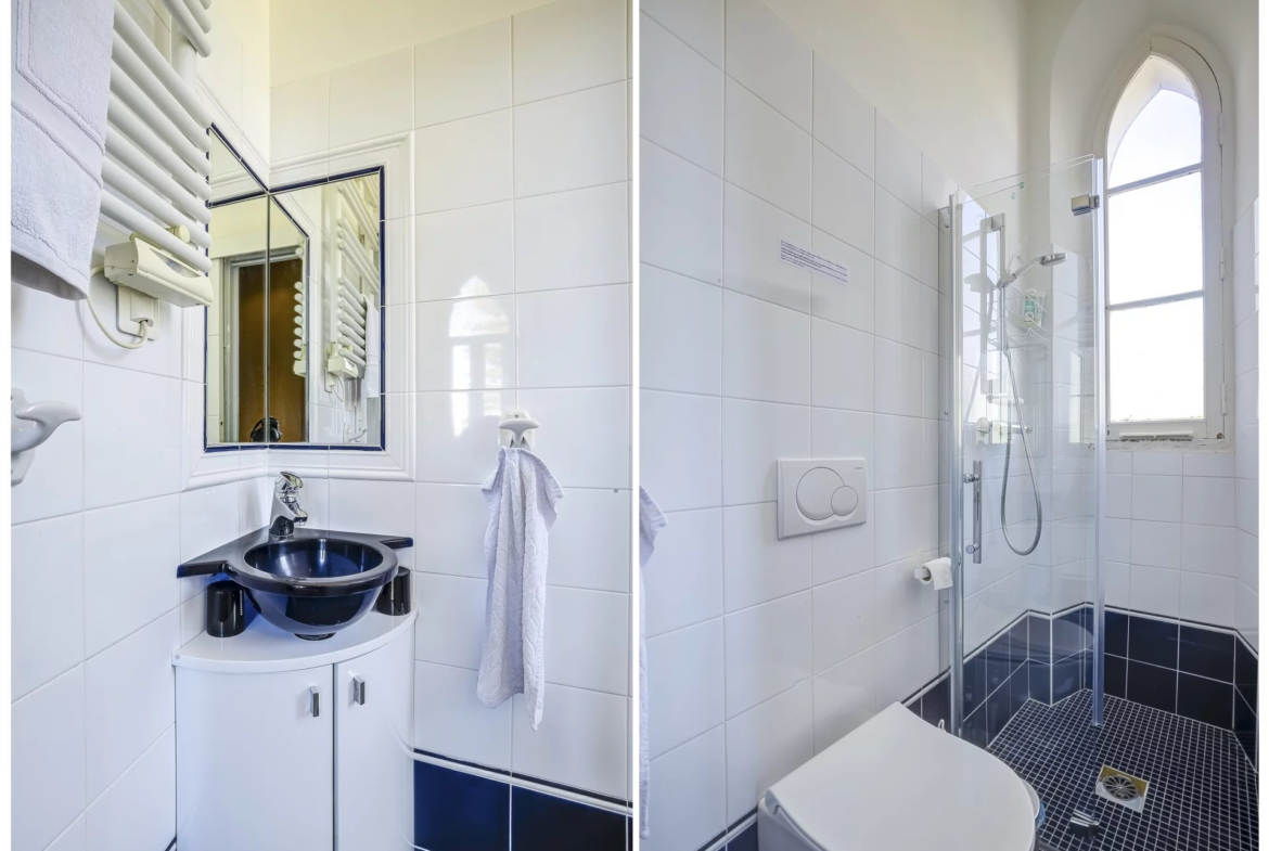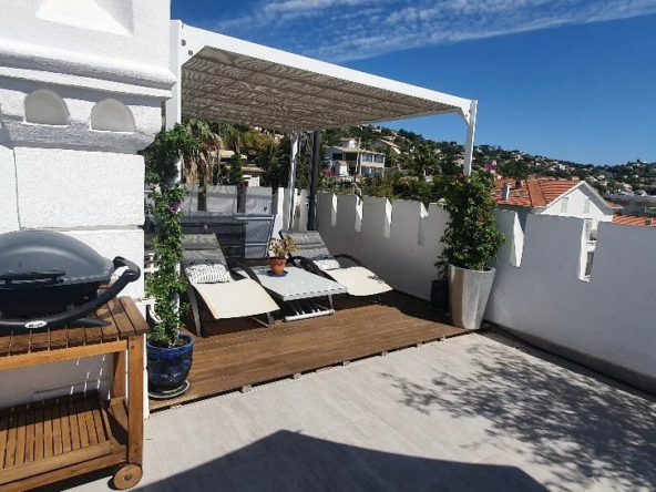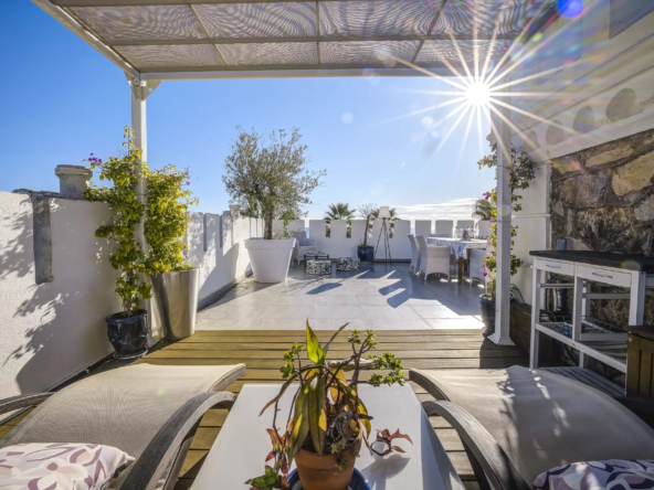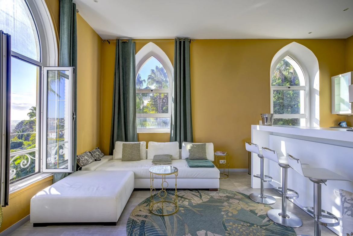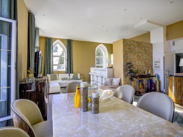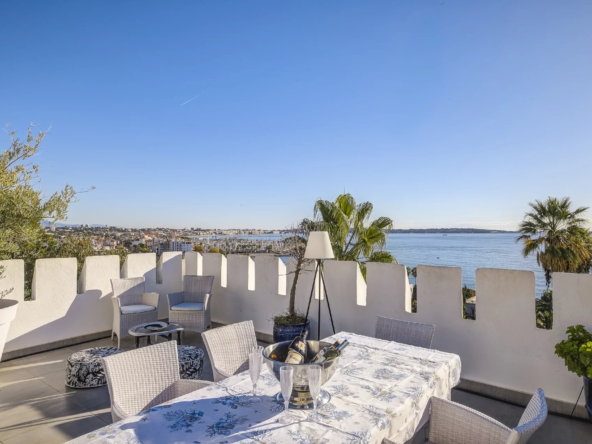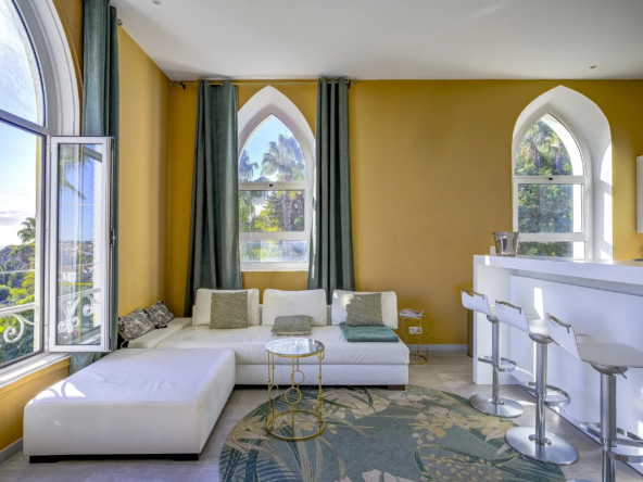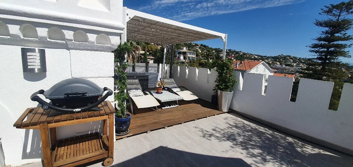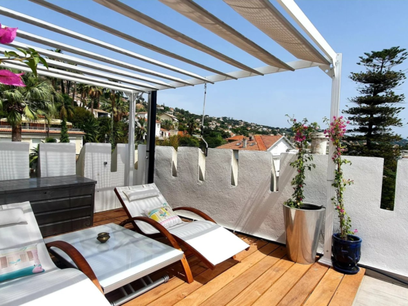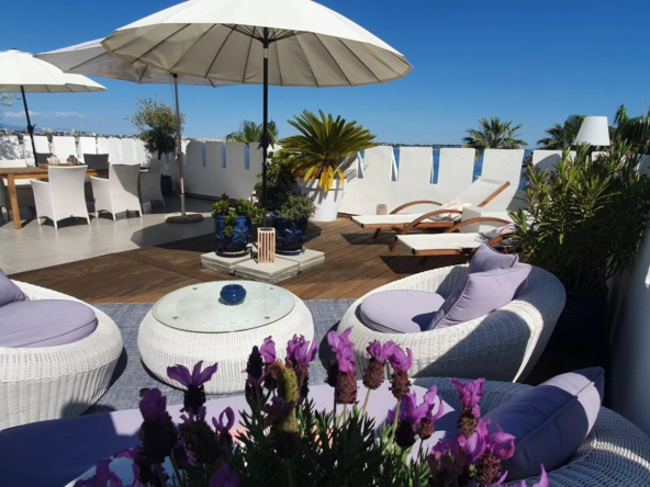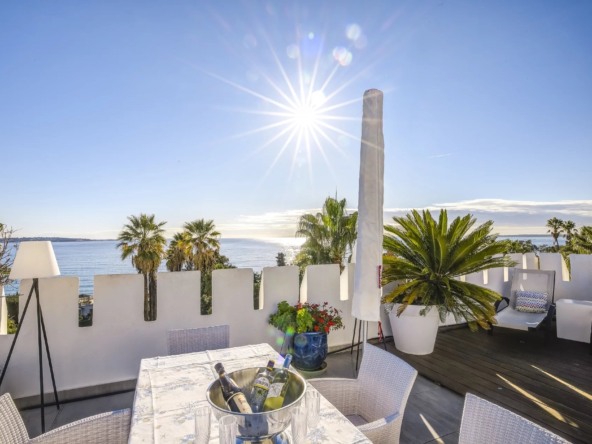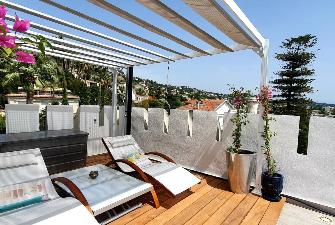 Penthouse dans La Villa Mauresque de 1885 à Golfe-Juan près de Cannes (6 min) et rénovée en 2022. Nous y proposons aujourd’hui tout le dernier étage composé d’un 3 pièces et d’un studio indépendant.