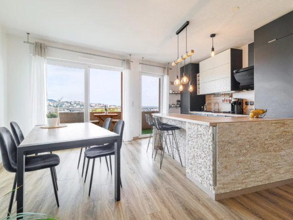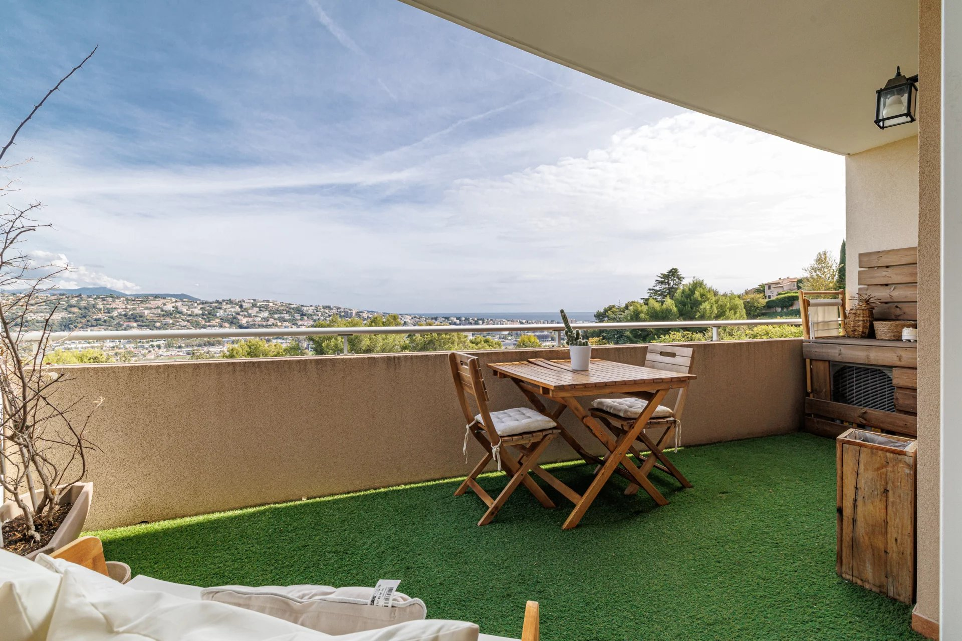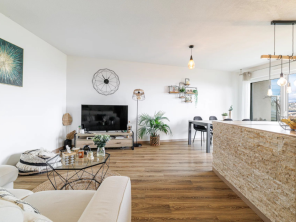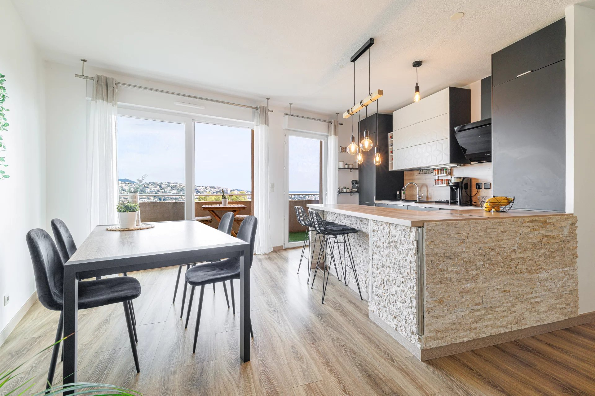 ST LAURENT DU VAR: Corniche Fahnestock, au dernier étage d’une très joli résidence contemporaine, sublime appartement d’environ 70m2 offrant un très grand séjour avec cuisine ouverte, belle terrasse ensoleillée de 12m2 à la vue panoramique et vue mer sans vis-à-vis, 2 chambres avec rangements, salle d’eau, WC séparés.