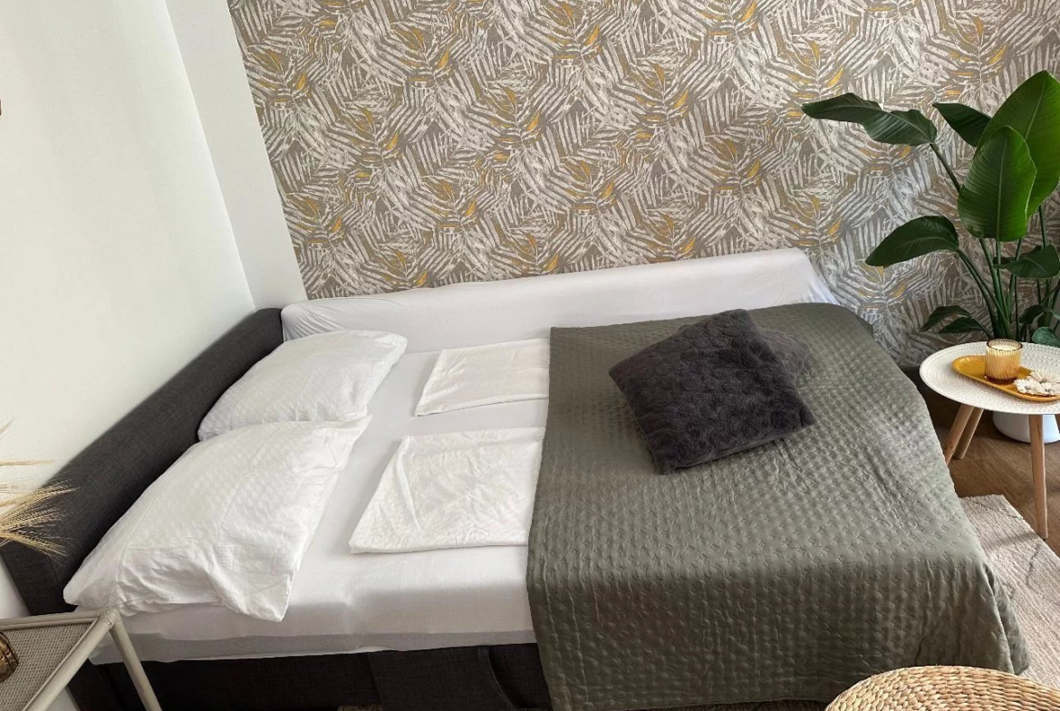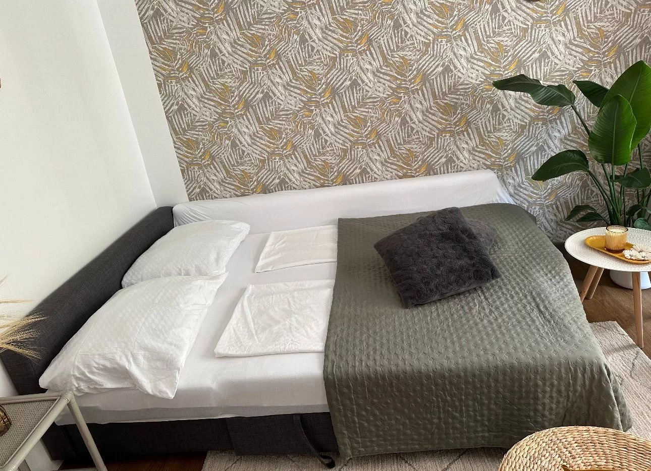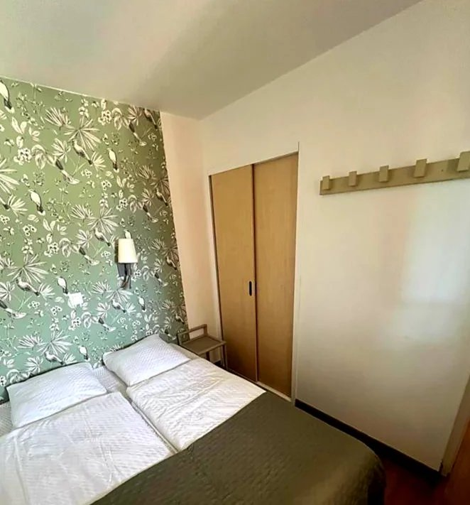 À l’entrée, un espace nuit supplémentaire avec canapé-lit et placard de rangement.